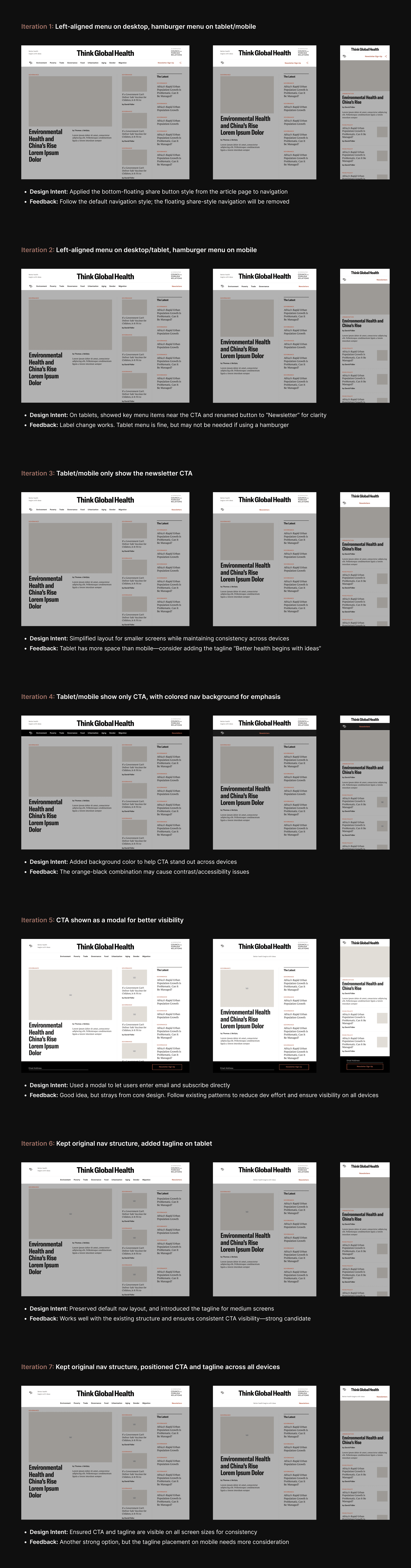 CTA Placement : Explored multiple CTA placements for visibility and consistency across devices