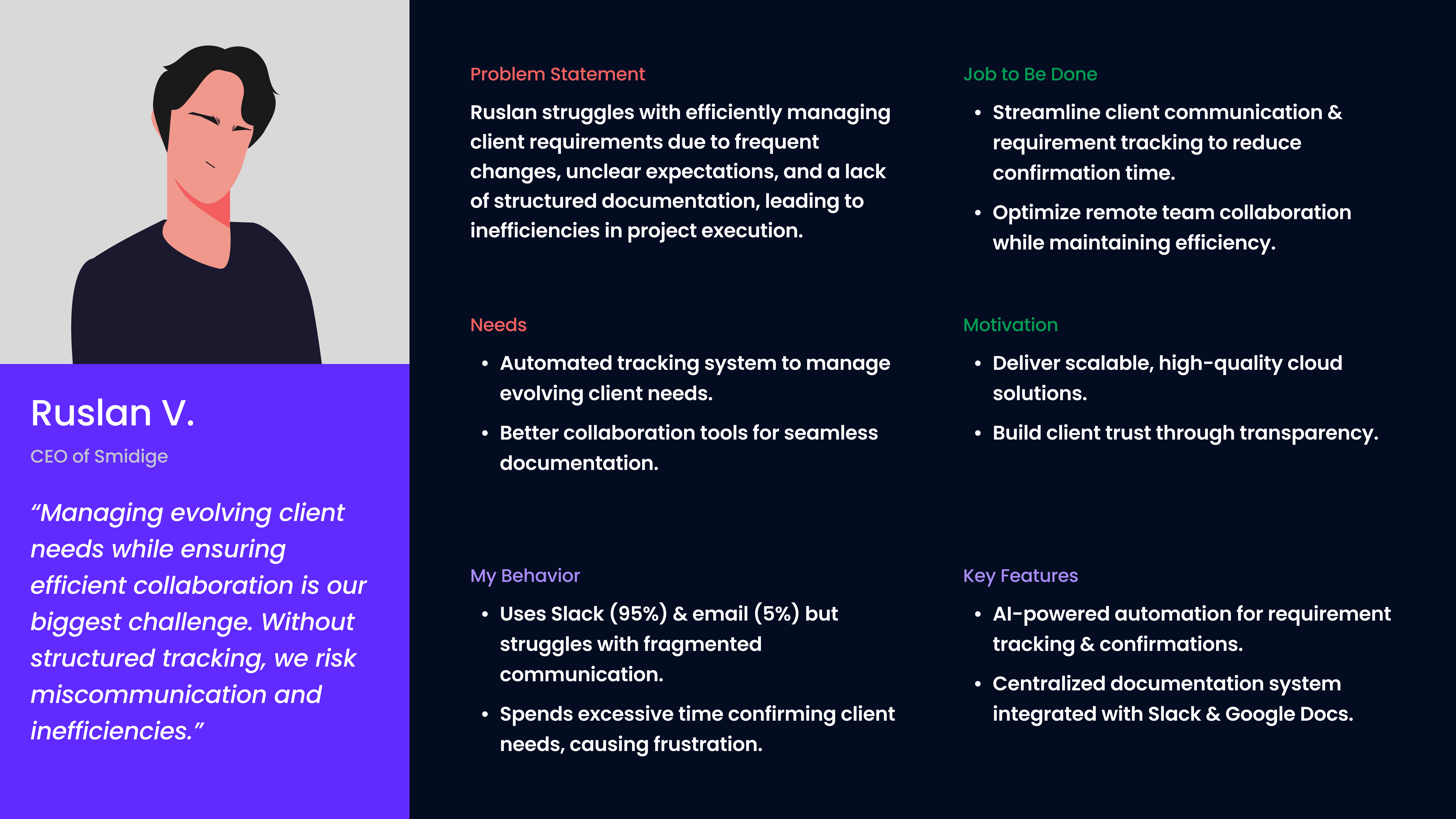 During this 15-week sponsored project, I participated in the full process from research to MVP development, gaining valuable hands-on experience in problem-solving and product thinking.